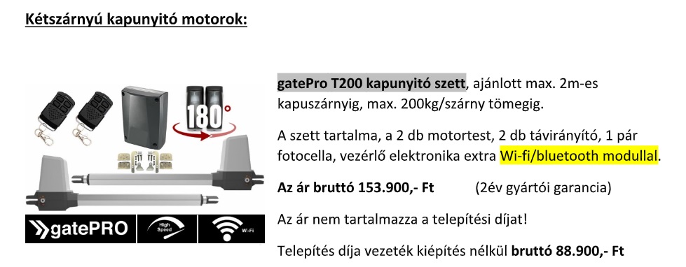 Kétszárnyú kapunyitó motorok: