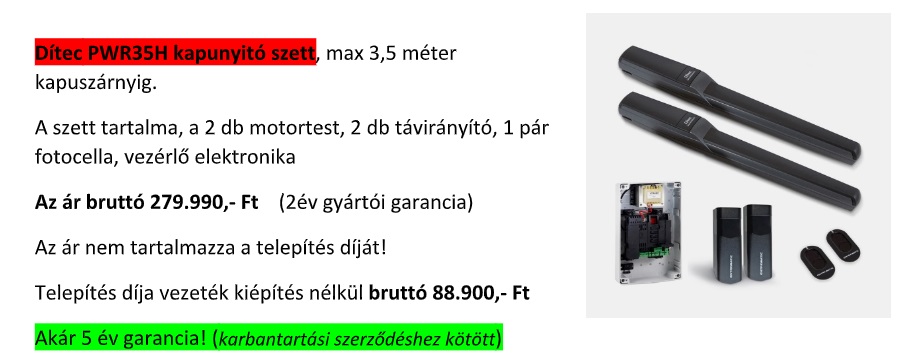 - Az automatika megfelelő beállítása, és a távirányítók feltanítása (maximum 5 db távirányító feltanítása ingyenes, további távirányítók feltanítása a telepítéssel egyidőben 1.000,- Ft/db)